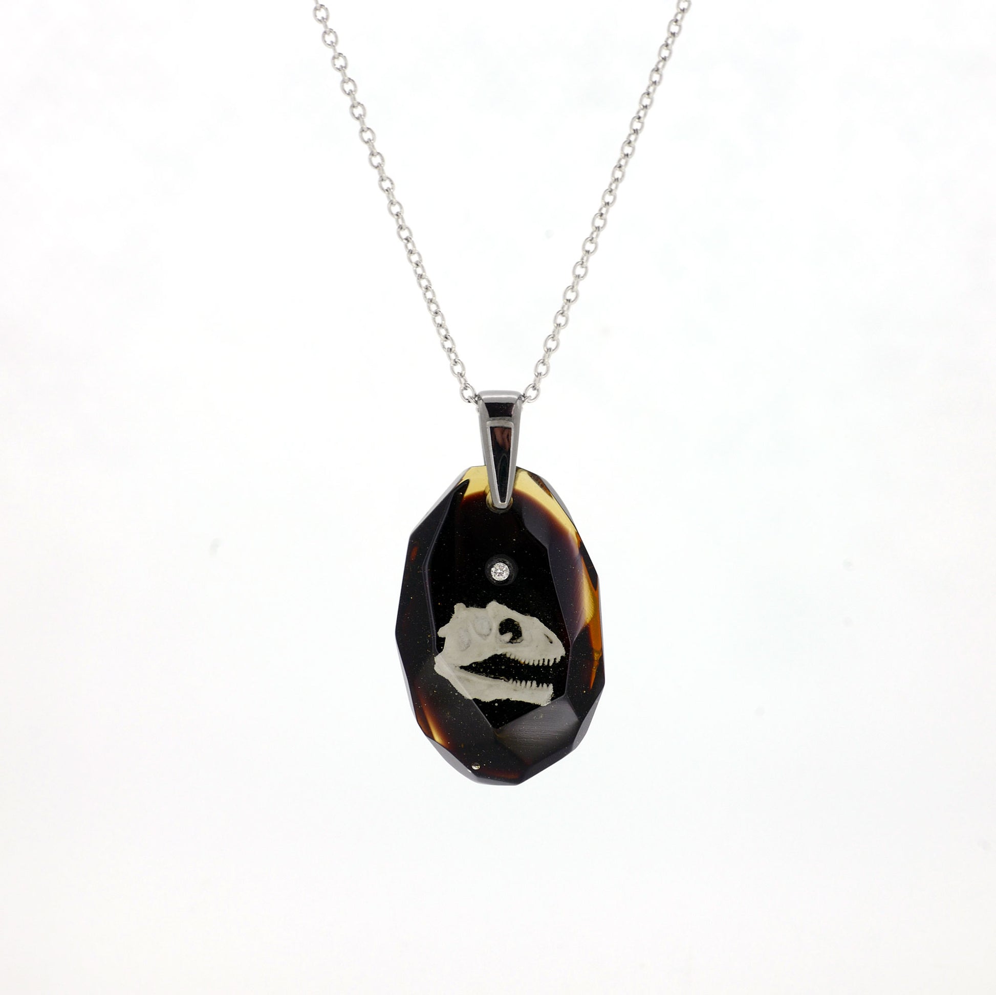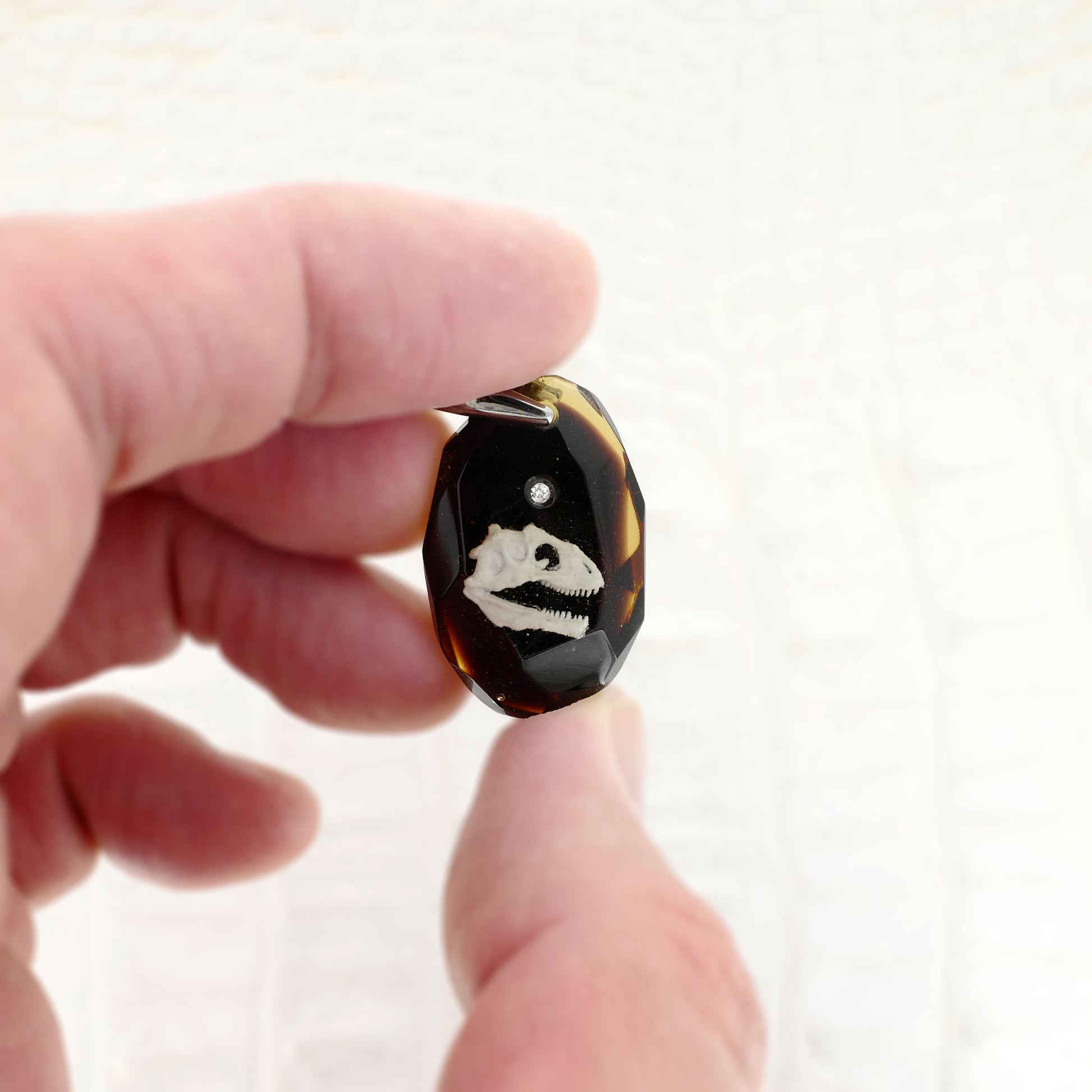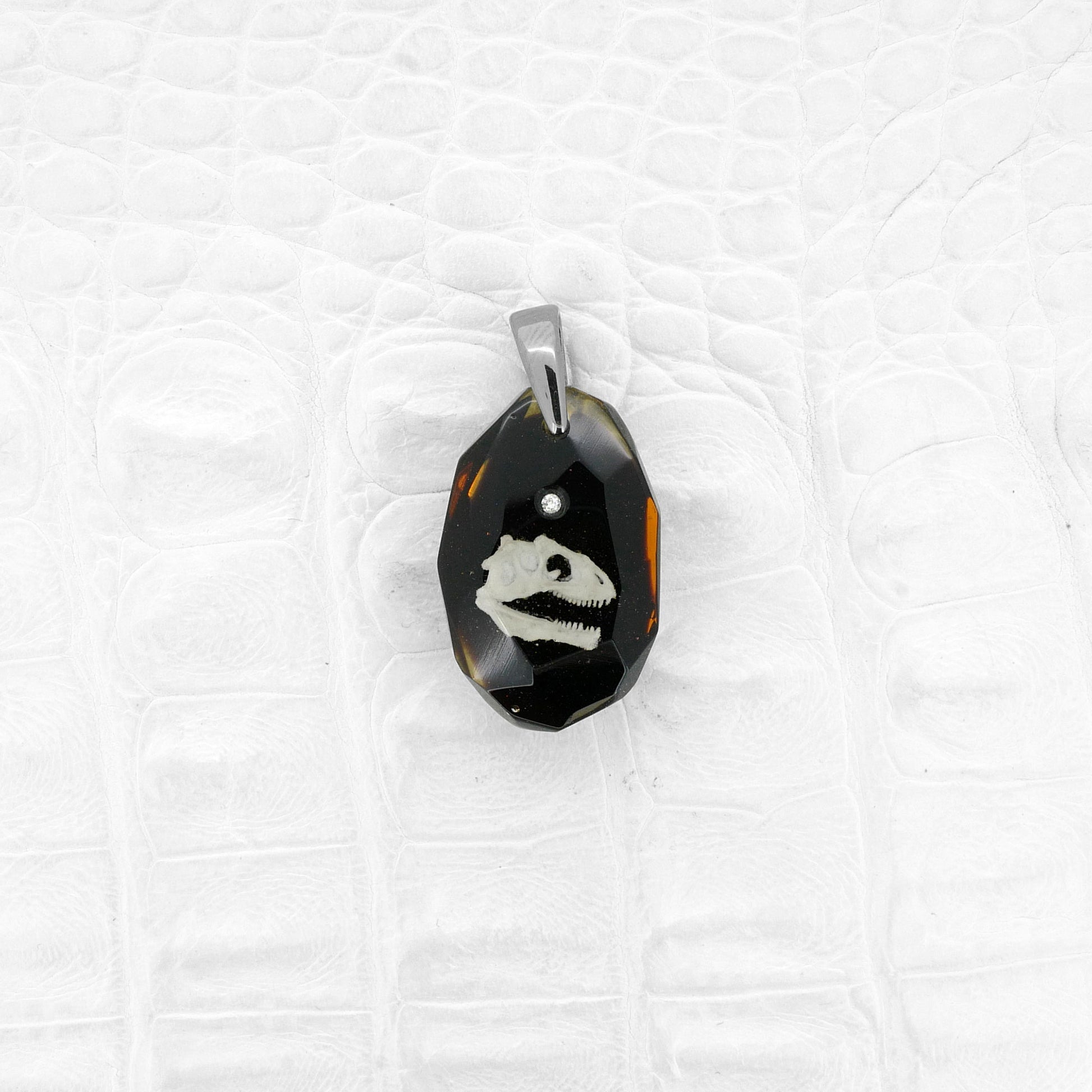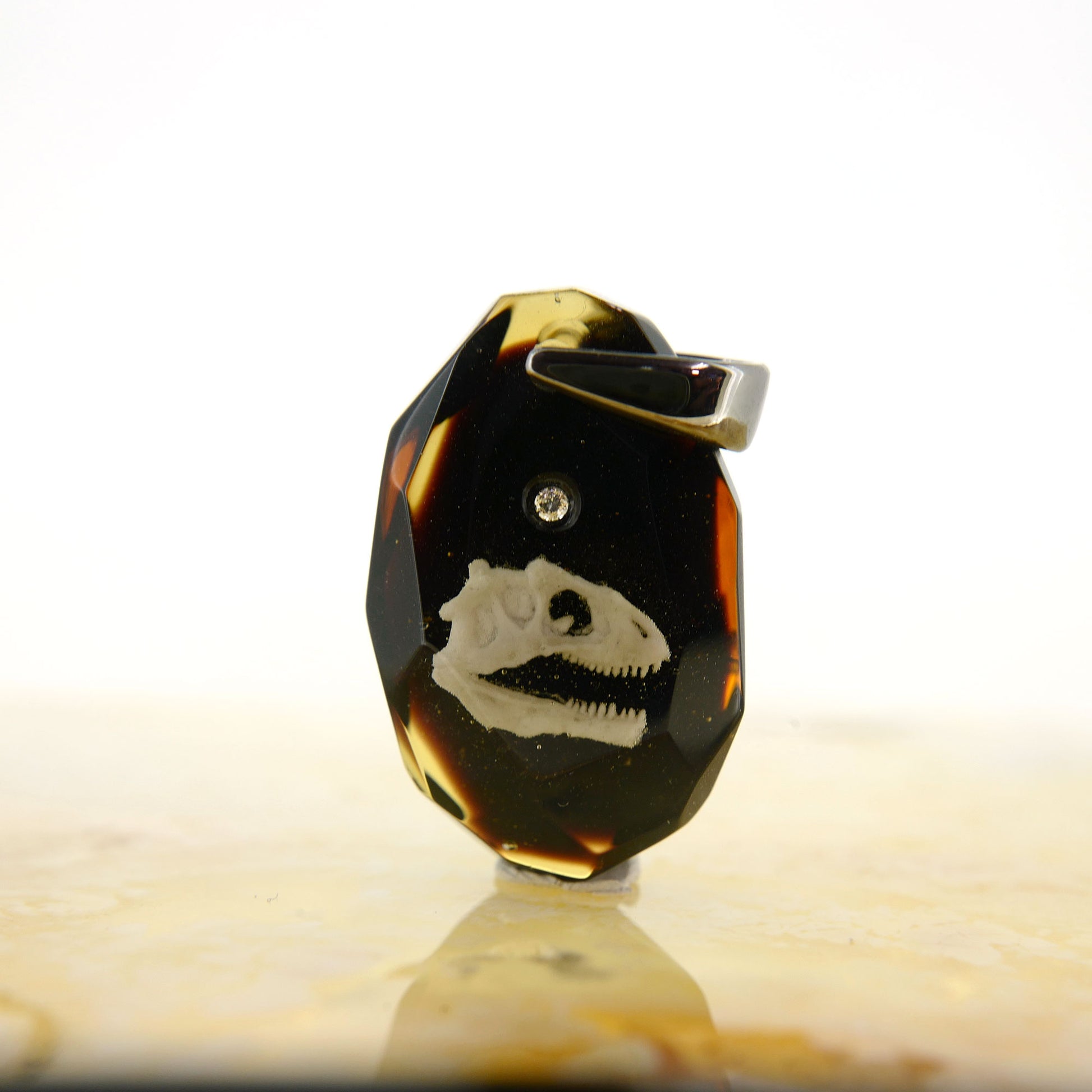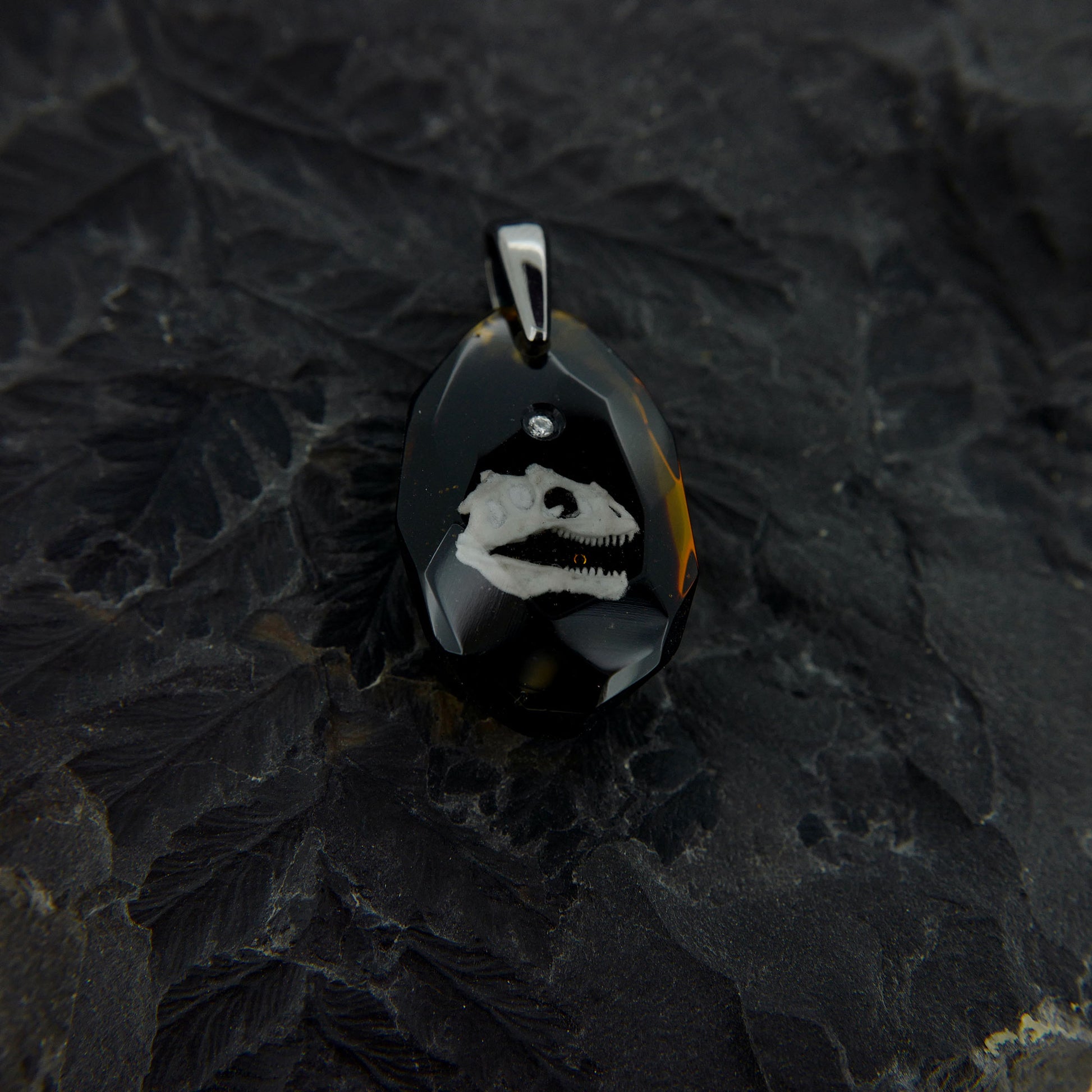 技術:漆黒の背景にアロサウルスの頭骨をリアルに表現しました。細かい凹凸まで忠実に表現しました。