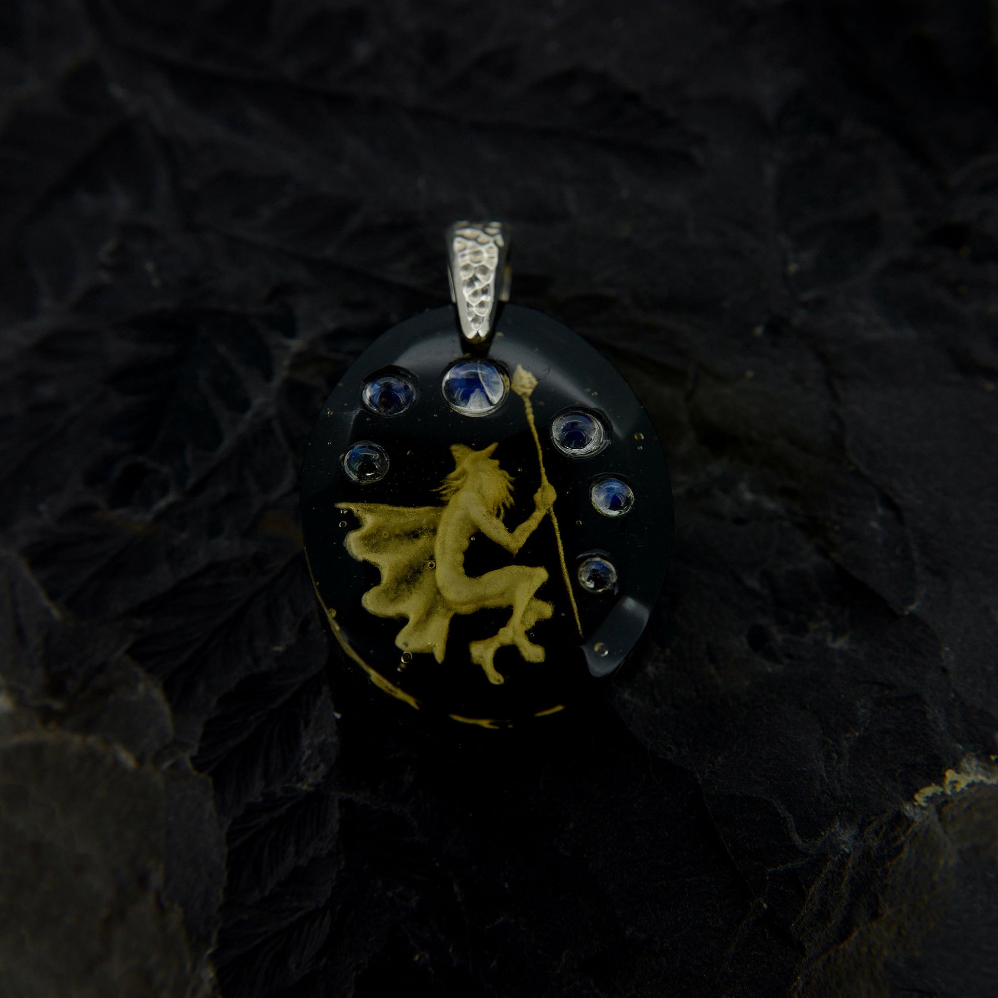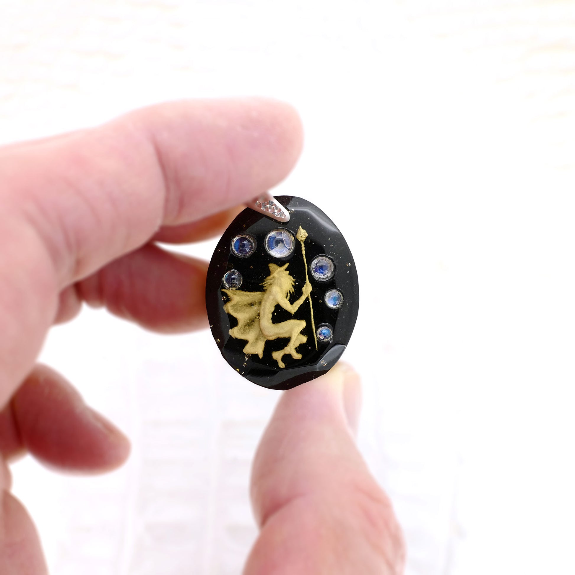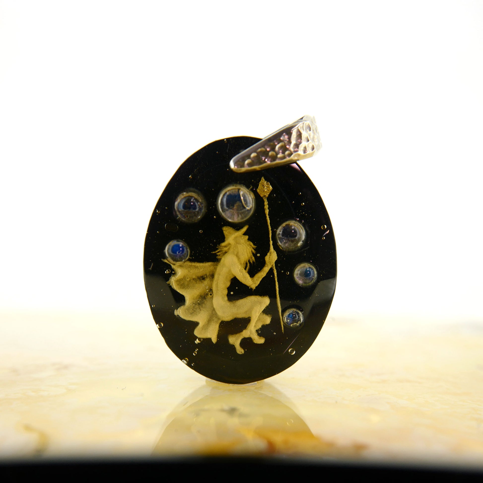技術:ベージュ/ブラックの背景にオーディンを繊細に細工しました。特徴であるつばの広い帽子と槍も忠実に表現。ヒゲや筋肉の盛り上がりなど細かい部分も丁寧に繊細に造形しています。