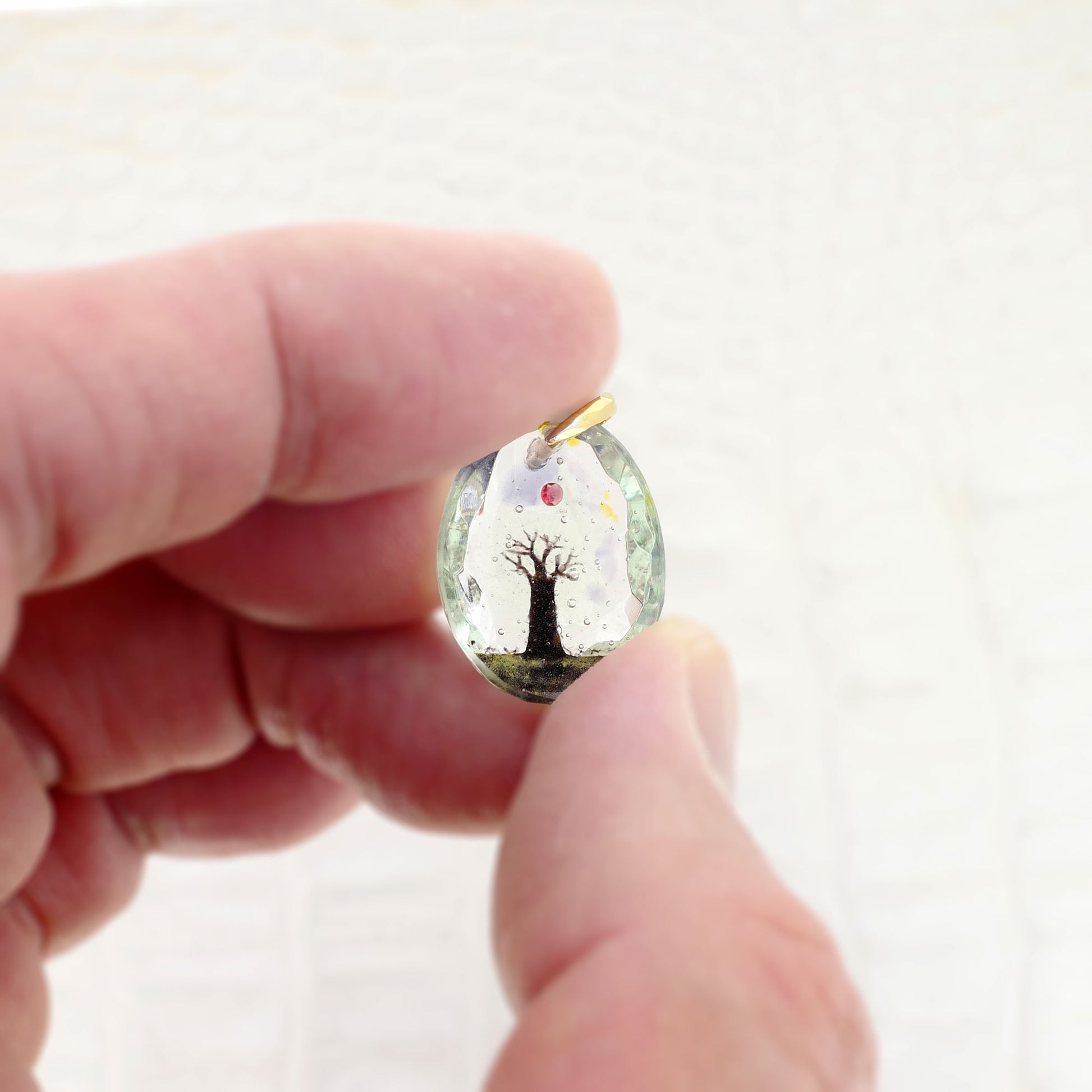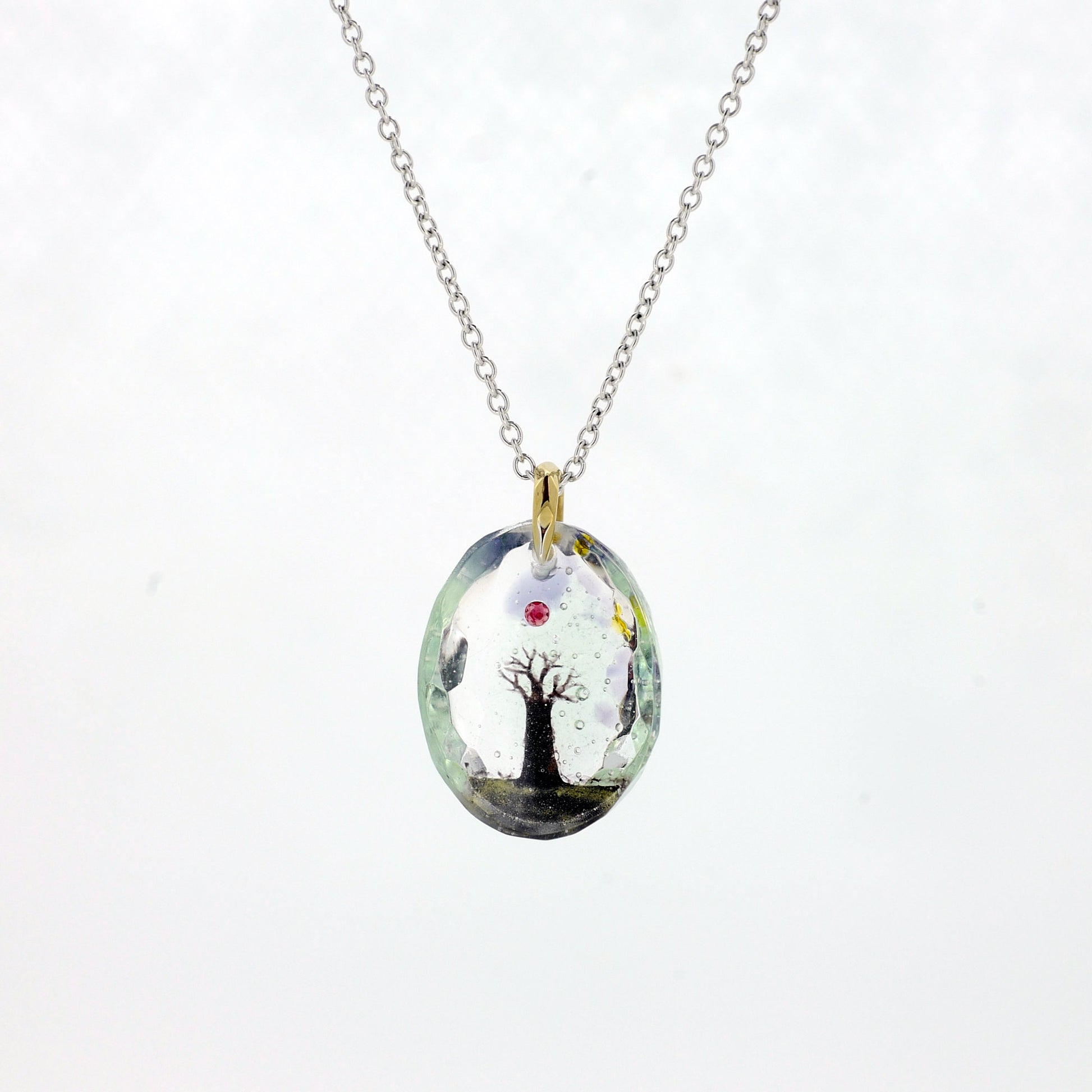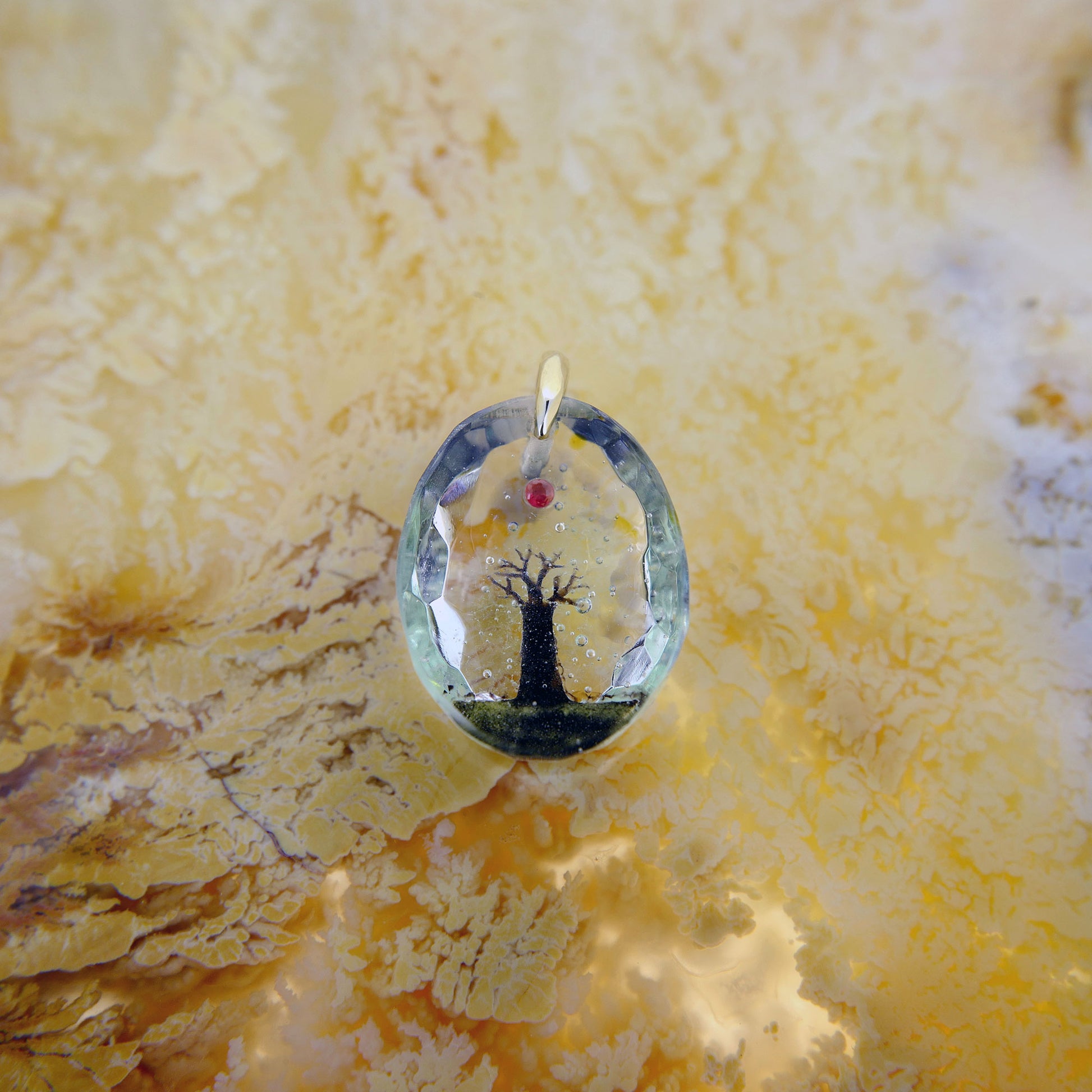 技術:淡い紫やグリーンを散らした背景に、力強くそびえ立つバオバブの木を繊細かつダイナミックに表現しました。