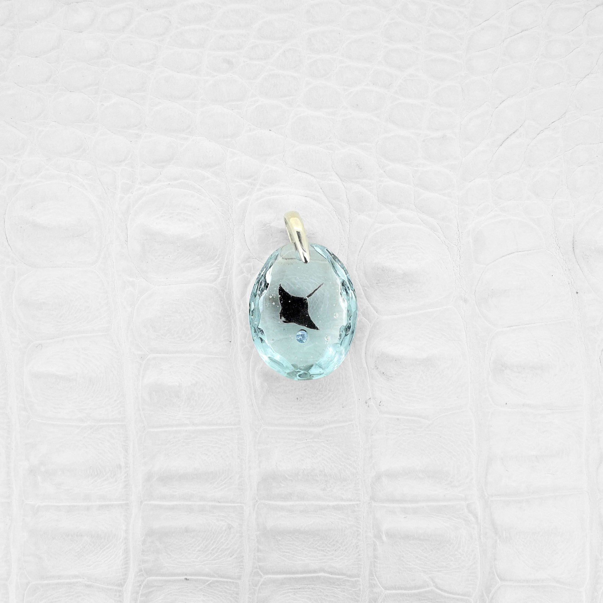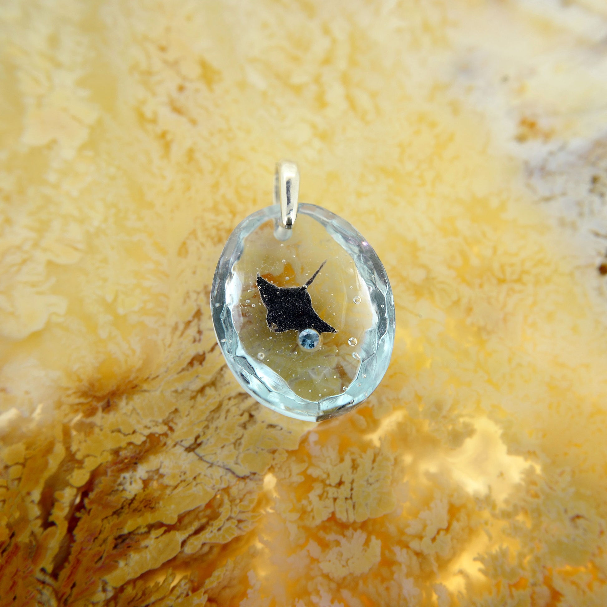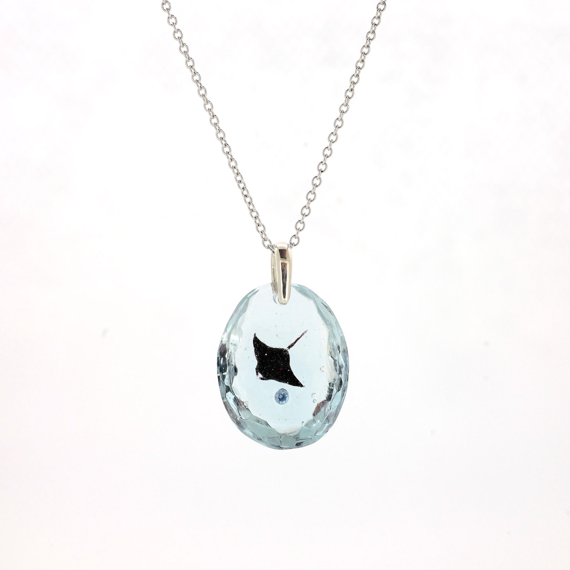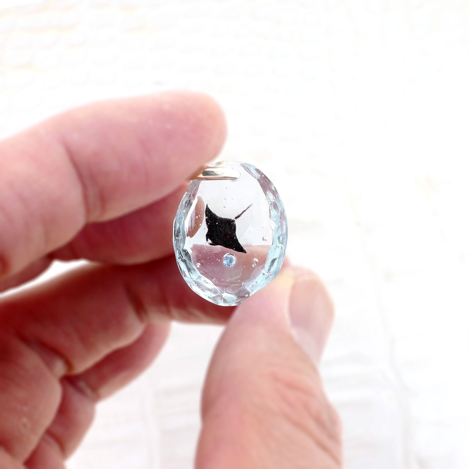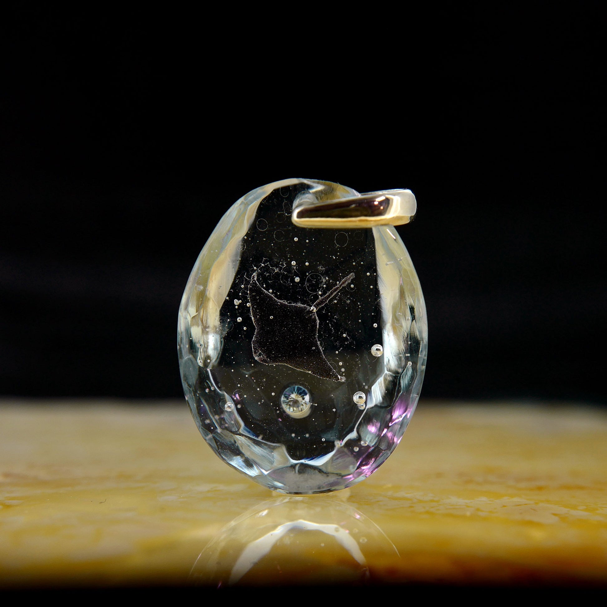 技術:ごく淡いブルーのガラスにオニイトマキエイを表現しました。